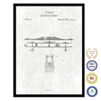 1842 Suspoension Bridge Old Patent Art Print on Canvas Custom Framed Vintage Home Decor Wall Decoration Great for Gifts