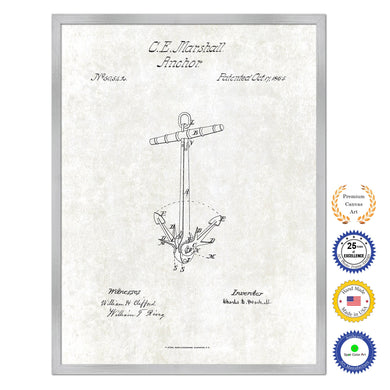 1865 Anchor Old Patent Art Print on Canvas Custom Framed Vintage Home Decor Wall Decoration Great for Gifts