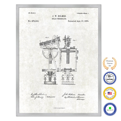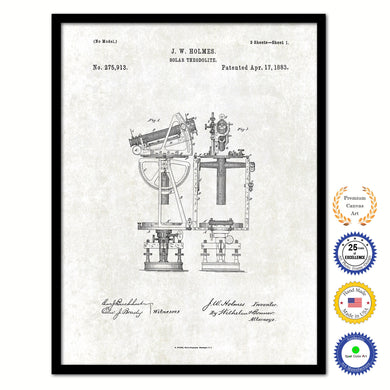 1883 Solar Theodolite Old Patent Art Print on Canvas Custom Framed Vintage Home Decor Wall Decoration Great for Gifts