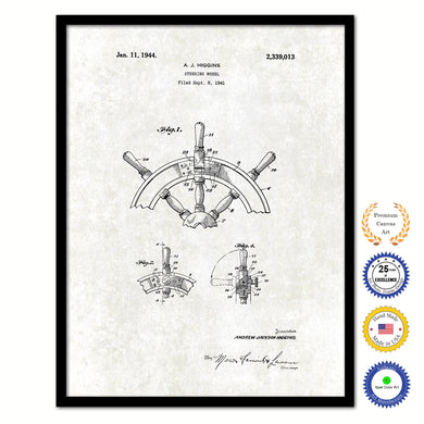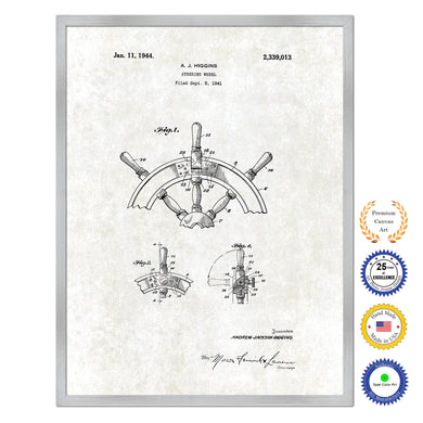 1941 Steering Wheel Old Patent Art Print on Canvas Custom Framed Vintage Home Decor Wall Decoration Great for Gifts