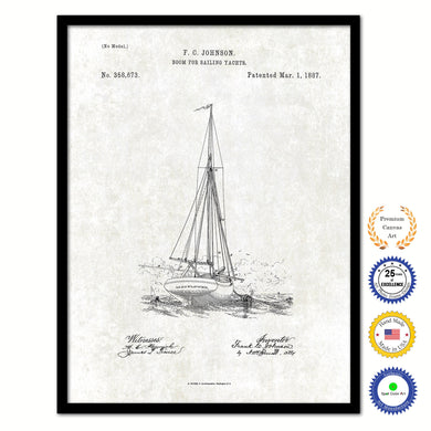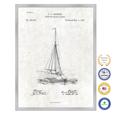 1887 Boom for sailing yachts Old Patent Art Print on Canvas Custom Framed Vintage Home Decor Wall Decoration Great for Gifts
