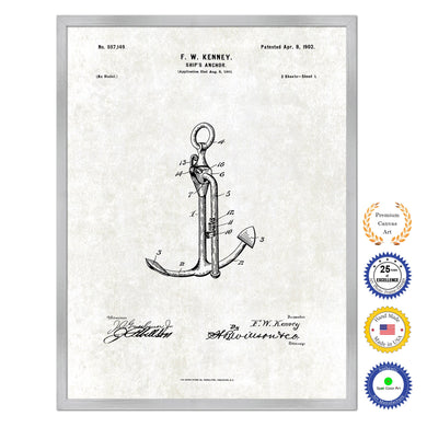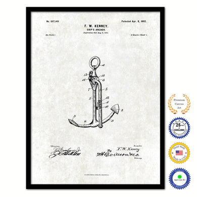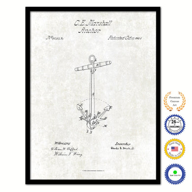 1902 Anchor Old Patent Art Print on Canvas Custom Framed Vintage Home Decor Wall Decoration Great for Gifts