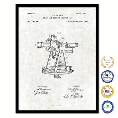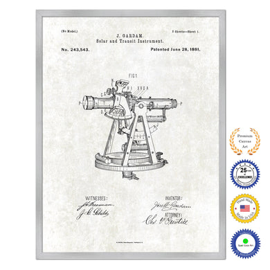 1881 Solar and transit instrument Old Patent Art Print on Canvas Custom Framed Vintage Home Decor Wall Decoration Great for Gifts
