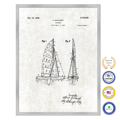 1983 Sailboat Old Patent Art Print on Canvas Custom Framed Vintage Home Decor Wall Decoration Great for Gifts