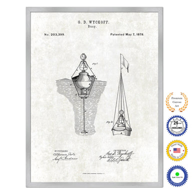 1878 Buoy Old Patent Art Print on Canvas Custom Framed Vintage Home Decor Wall Decoration Great for Gifts