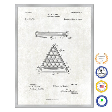 1891 Billiard Pool Ball Frame Old Patent Art Print on Canvas Custom Framed Vintage Home Decor Wall Decoration Great for Gifts