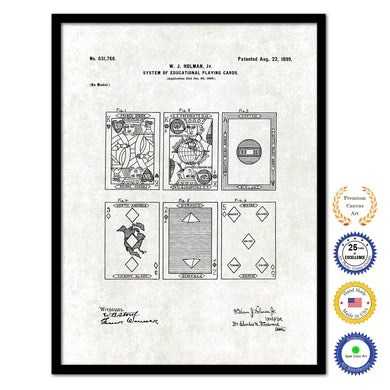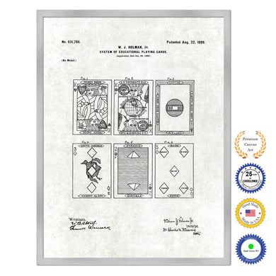 1899 System of Educational Playing Cards Old Patent Art Print on Canvas Custom Framed Vintage Home Decor Wall Decoration Great for Gifts