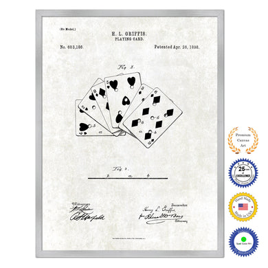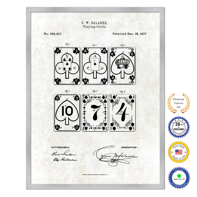 1877 Playing Cards Poker Game Old Patent Art Print on Canvas Custom Framed Vintage Home Decor Wall Decoration Great for Gifts