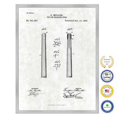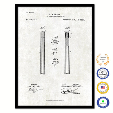 1897 Tip for Billiard Cues Old Patent Art Print on Canvas Custom Framed Vintage Home Decor Wall Decoration Great for Gifts