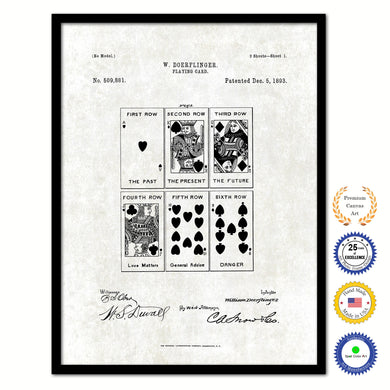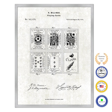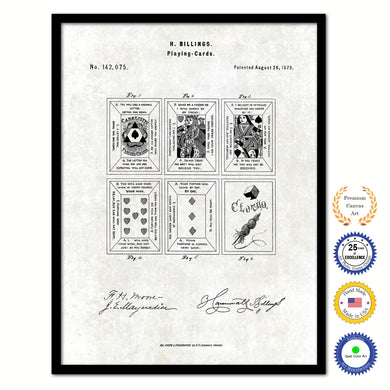 1876 Playing Cards Face Poker Game Old Patent Art Print on Canvas Custom Framed Vintage Home Decor Wall Decoration Great for Gifts