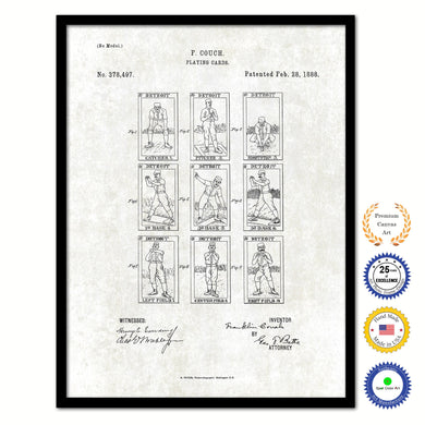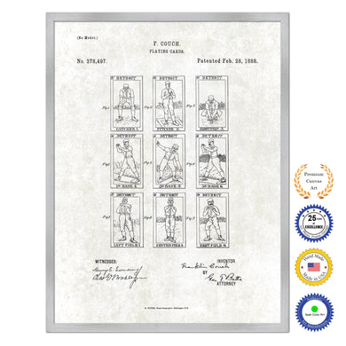 1888 Baseball Playing Cards Old Patent Art Print on Canvas Custom Framed Vintage Home Decor Wall Decoration Great for Gifts