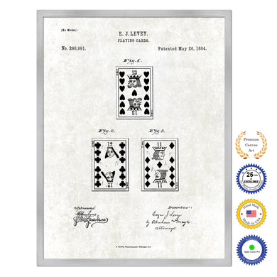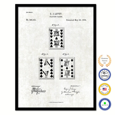 1884 Playing Cards Face Poker Game Old Patent Art Print on Canvas Custom Framed Vintage Home Decor Wall Decoration Great for Gifts