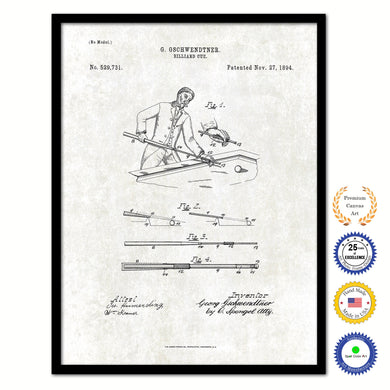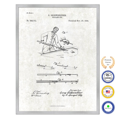 1894 Billiard Cue Stick Old Patent Art Print on Canvas Custom Framed Vintage Home Decor Wall Decoration Great for Gifts