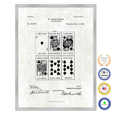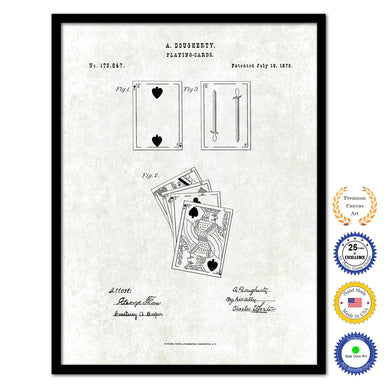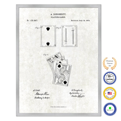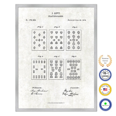 1876 Playing Cards Poker Game Old Patent Art Print on Canvas Custom Framed Vintage Home Decor Wall Decoration Great for Gifts