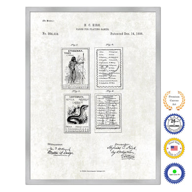 1886 Cards For Playing Games Old Patent Art Print on Canvas Custom Framed Vintage Home Decor Wall Decoration Great for Gifts