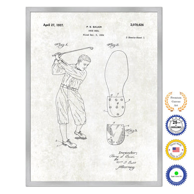 1937 Shoe Heel Old Patent Art Print on Canvas Custom Framed Vintage Home Decor Wall Decoration Great for Gifts