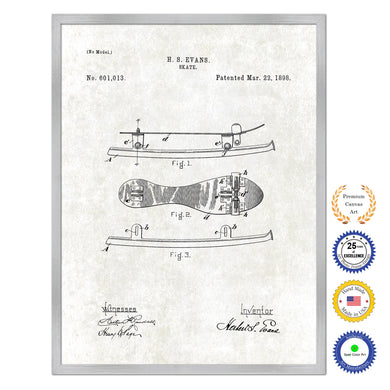 1898 Skate Old Patent Art Print on Canvas Custom Framed Vintage Home Decor Wall Decoration Great for Gifts