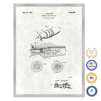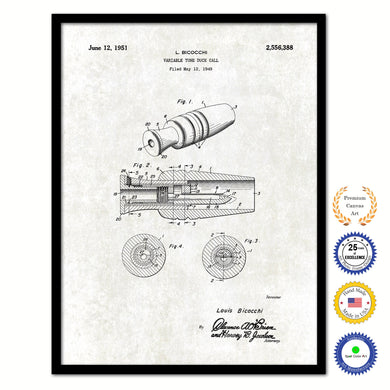 1951 Variable Tone Duck Call Old Patent Art Print on Canvas Custom Framed Vintage Home Decor Wall Decoration Great for Gifts