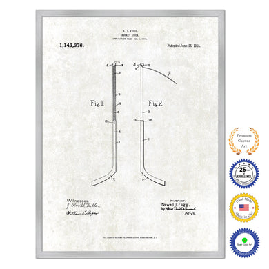 1915 Hockey Stick Old Patent Art Print on Canvas Custom Framed Vintage Home Decor Wall Decoration Great for Gifts
