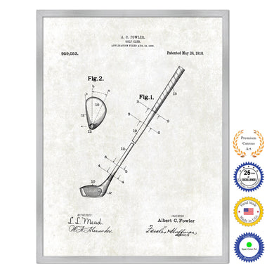 1910 Golf Club Old Patent Art Print on Canvas Custom Framed Vintage Home Decor Wall Decoration Great for Gifts