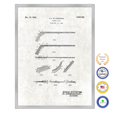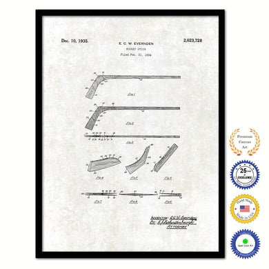 1935 Hockey Stick Old Patent Art Print on Canvas Custom Framed Vintage Home Decor Wall Decoration Great for Gifts