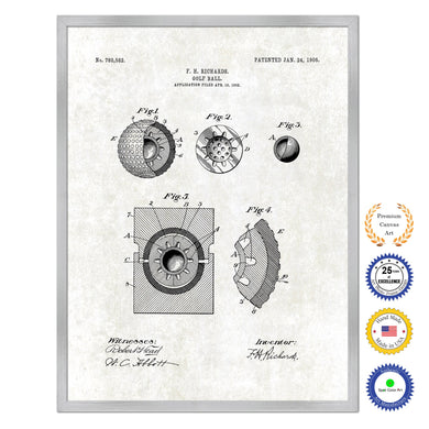 1902 Golf Ball Old Patent Art Print on Canvas Custom Framed Vintage Home Decor Wall Decoration Great for Gifts