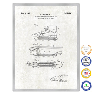 1927 Tie Device for Snow Skates Old Patent Art Print on Canvas Custom Framed Vintage Home Decor Wall Decoration Great for Gifts