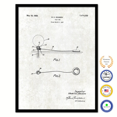 1928 Golf Tee Old Patent Art Print on Canvas Custom Framed Vintage Home Decor Wall Decoration Great for Gifts