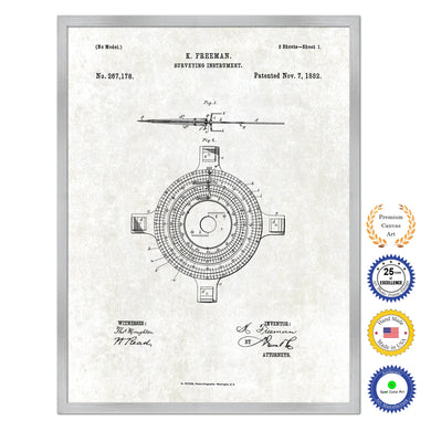 1882 Surveying Instrument Old Patent Art Print on Canvas Custom Framed Vintage Home Decor Wall Decoration Great for Gifts