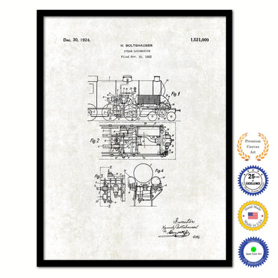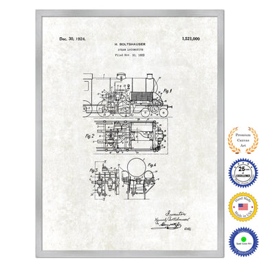 1924 Steam Locomotive Old Patent Art Print on Canvas Custom Framed Vintage Home Decor Wall Decoration Great for Gifts