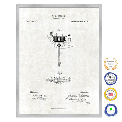 1877 Stencil Pen Old Patent Art Print on Canvas Custom Framed Vintage Home Decor Wall Decoration Great for Gifts