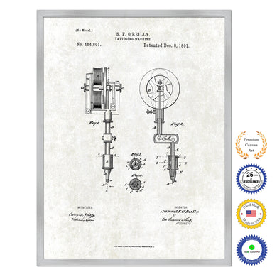 1891 Tattooing Machine Old Patent Art Print on Canvas Custom Framed Vintage Home Decor Wall Decoration Great for Gifts