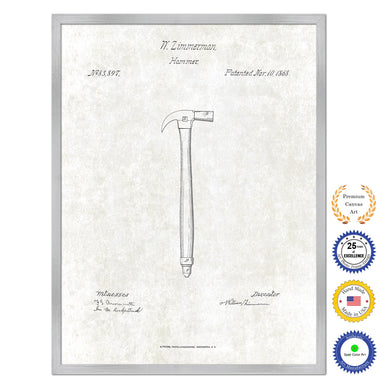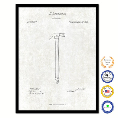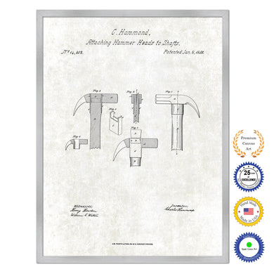 1868 Hammer Old Patent Art Print on Canvas Custom Framed Vintage Home Decor Wall Decoration Great for Gifts