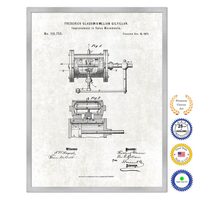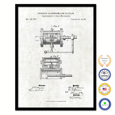 1871 Improvement in Valve Movements Old Patent Art Print on Canvas Custom Framed Vintage Home Decor Wall Decoration Great for Gifts