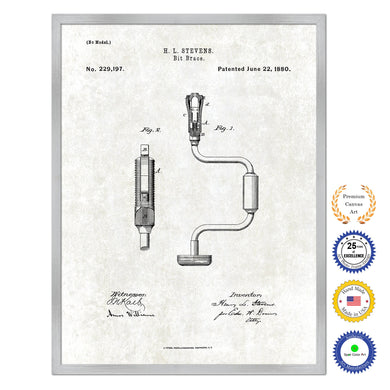 1880 Bit Brace Old Patent Art Print on Canvas Custom Framed Vintage Home Decor Wall Decoration Great for Gifts