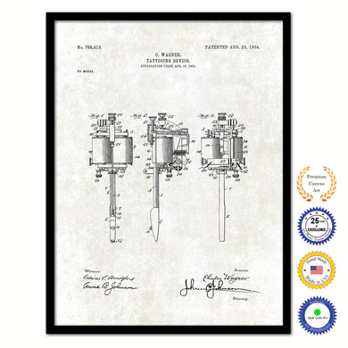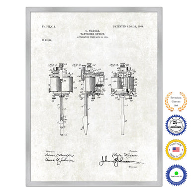 1904 Electric Tattooing Device Old Patent Art Print on Canvas Custom Framed Vintage Home Decor Wall Decoration Great for Gifts