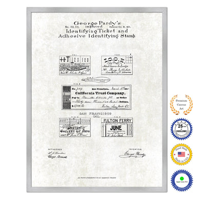 1871 Stamp Old Patent Art Print on Canvas Custom Framed Vintage Home Decor Wall Decoration Great for Gifts
