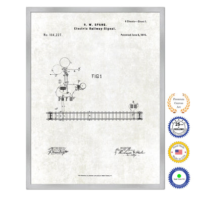 1875 Electric Railway Signal Old Patent Art Print on Canvas Custom Framed Vintage Home Decor Wall Decoration Great for Gifts