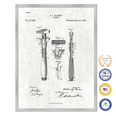 1889 Wrench Old Patent Art Print on Canvas Custom Framed Vintage Home Decor Wall Decoration Great for Gifts