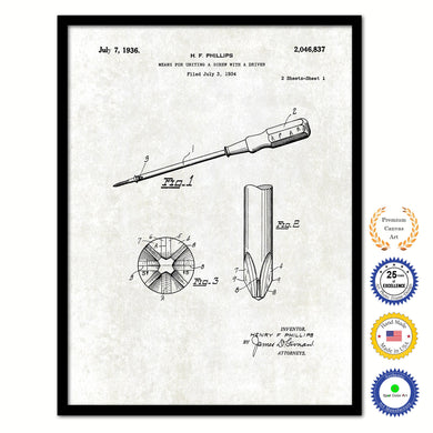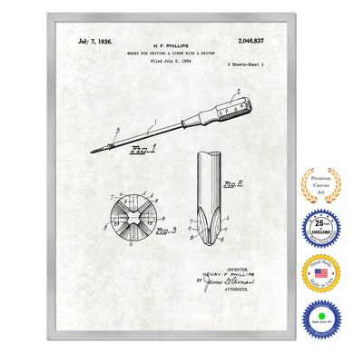 1936 Screwdriver with Driver Old Patent Art Print on Canvas Custom Framed Vintage Home Decor Wall Decoration Great for Gifts