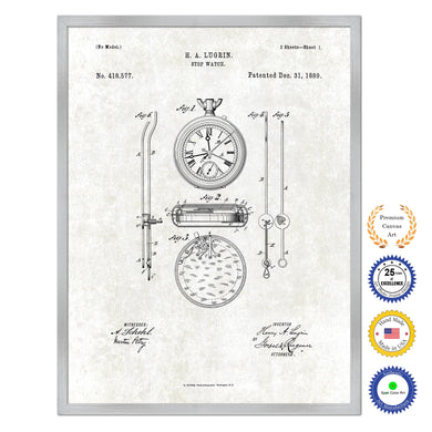 1889 Stop Watch Old Patent Art Print on Canvas Custom Framed Vintage Home Decor Wall Decoration Great for Gifts