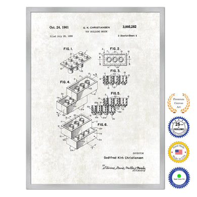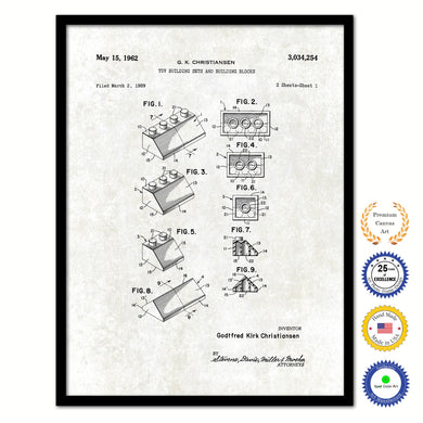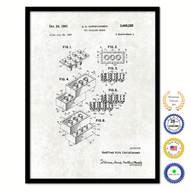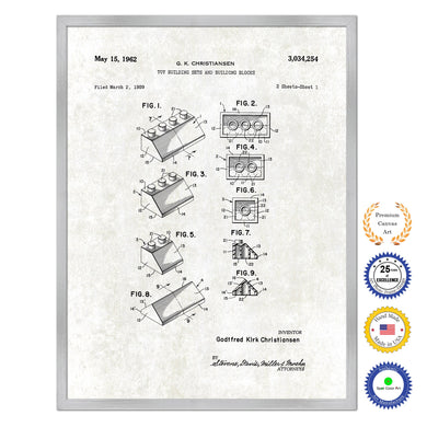 1962 Legos Building Sets and Blocks Old Patent Art Print on Canvas Custom Framed Vintage Home Decor Wall Decoration Great for Gifts
