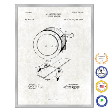 1889 Lumber Measure Old Patent Art Print on Canvas Custom Framed Vintage Home Decor Wall Decoration Great for Gifts