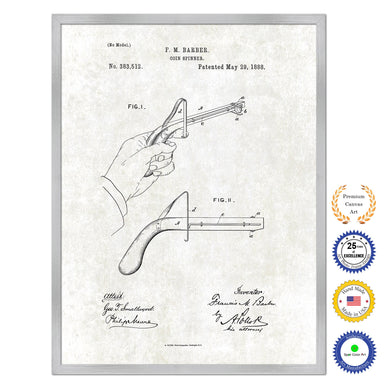 1888 Coin Spinner Old Patent Art Print on Canvas Custom Framed Vintage Home Decor Wall Decoration Great for Gifts