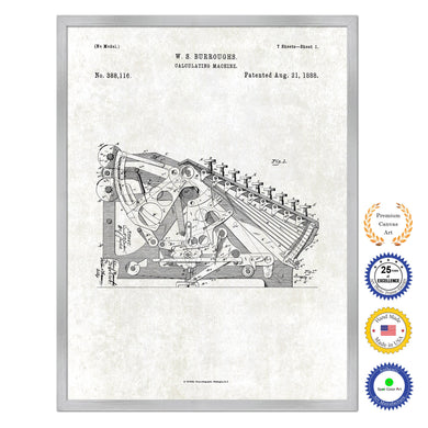 1888 Calculating Machine Old Patent Art Print on Canvas Custom Framed Vintage Home Decor Wall Decoration Great for Gifts