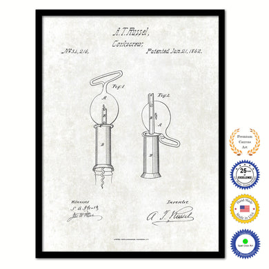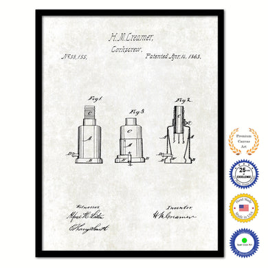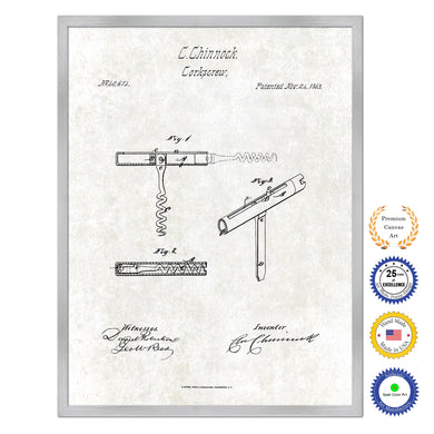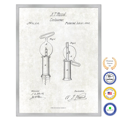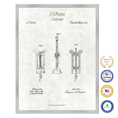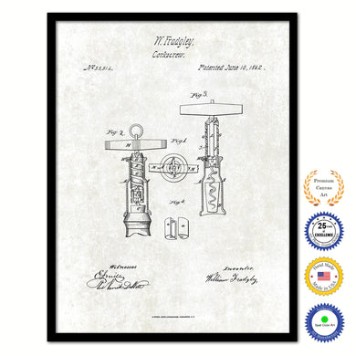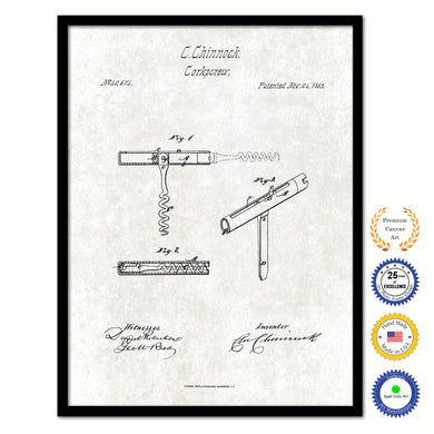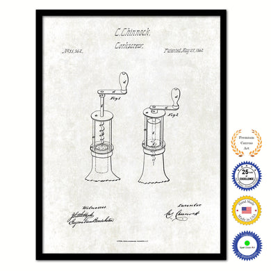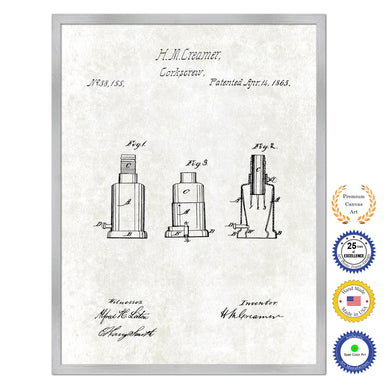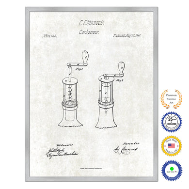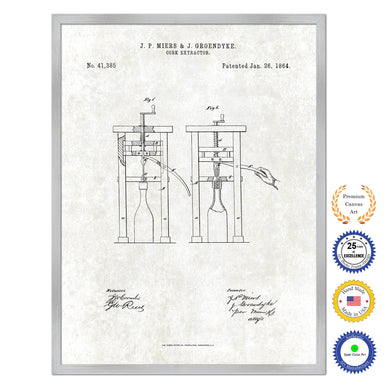 1864 Wine Cork Extractor Old Patent Art Print on Canvas Custom Framed Vintage Home Decor Wall Decoration Great for Gifts