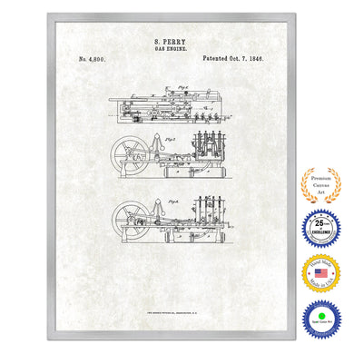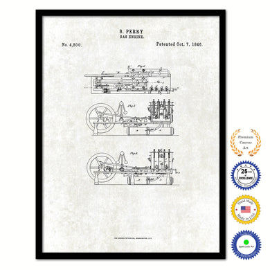1846 Gas Engine Old Patent Art Print on Canvas Custom Framed Vintage Home Decor Wall Decoration Great for Gifts