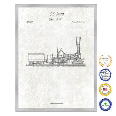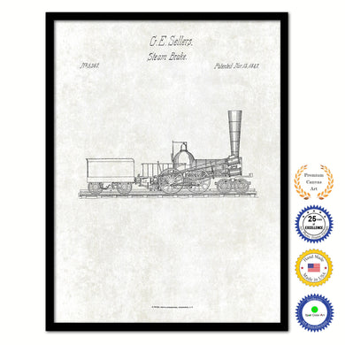 1847 Steam Brake Old Patent Art Print on Canvas Custom Framed Vintage Home Decor Wall Decoration Great for Gifts