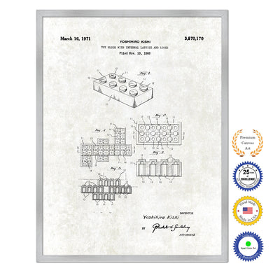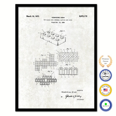 1971 Legos Block Old Patent Art Print on Canvas Custom Framed Vintage Home Decor Wall Decoration Great for Gifts
