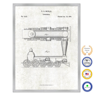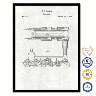 1848 Locomotive Old Patent Art Print on Canvas Custom Framed Vintage Home Decor Wall Decoration Great for Gifts